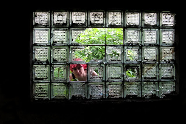 Panienka z okienka mazowieckiego. Owczarnia pod Podkową Leśną, znaną resztką miasta-ogrodu. Budynek z okienkiem też resztkowy, zatem wszystko się zgadza. No i luksfery, moje ulubione i prawdziwe!
