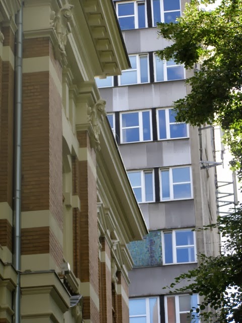 I teraz mam problem z identyfikacją zdjęć. Robiłam na dużych zoomach, minęło trochę czasu od wakacji i nie jestem pewna gdzie kończy się "maluch", a gdzie zaczyna podobnie zdobiony, dużo większy budynek innego wydziału (tym bardziej nie wiem jakiego). Więc wrzucam fotki po kolei, nawet widać miejsce między nimi. Tylko że wierciłam się w pobliżu tam i siam. Czy ktoś wie, co się mieści w "dużym" budynku obok?
