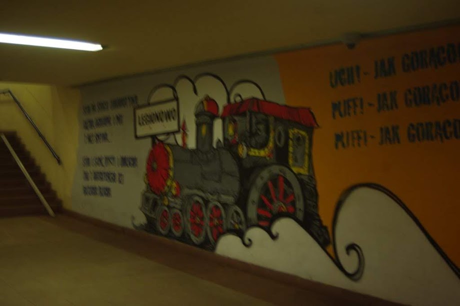Ostatnio w Warszawie jestem przelotem, to mi ciekawostki nie wpadają w obiektyw, ale za to wpadła jedna w Legionowie. Otóż w przejściu podziemnym stacji można obejrzeć graffiti ze znanym wierszem o lokomotywie. :)