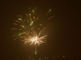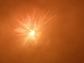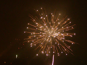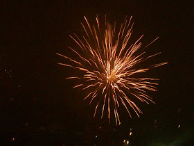 Trochę trwało zanim doszłam do wniosku,że najlepiej wychodzą przy czasie 1/8 lub 1/5sekundy, ISO 200 i trzeba kliknąć na spust sekundę przed wybuchem.... wybuch wychodzi bardzo źle,więc trzeba zacząć robić zdjęcie tuż po wybuchu.... ale aparat robi zdjęcie z opóźnieniem.... na szczęście miałam na czym ćwiczyć bo sztucznych ogni było dużo....