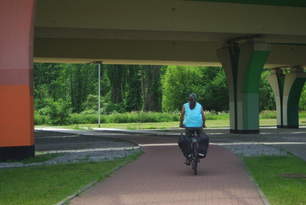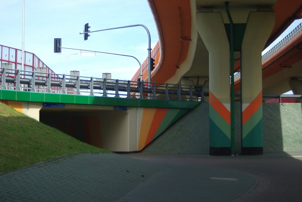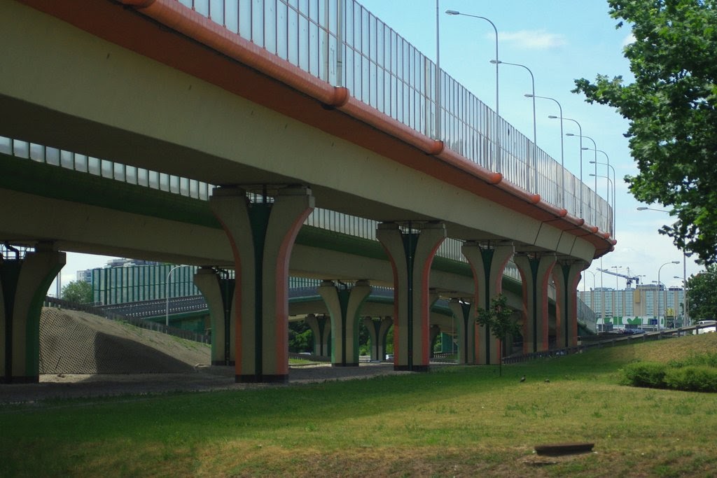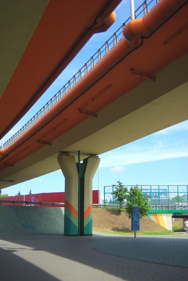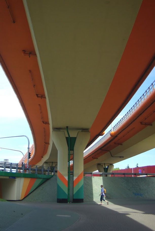 W Warszawie słupów od groma. Poszłam na łatwiznę i sfociłam kolorowe słupy estakad Węzła Marsa, który jest prawdziwym labiryntem nie tylko dla kierowców, ale przede wszystkim dla rowerzystów. Nie wiem kto projektował okolicę pod tym względem, ale niech da spróbować tego, co wtedy zażywał. Istny labirynt.
